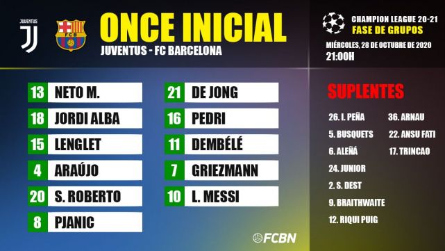 Line Ups Of The Juventus Fc Barcelona Of The Champions 2020 21